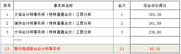 根據(jù)2019年11月8日江西省注冊會計師協(xié)會官網(wǎng)發(fā)布的全省會計師事務所最新排名公示,贛州恒誠聯(lián)合會計師事務所榮獲第23名,比上年進步13名。恒誠會計師事務所已連續(xù)4年躋身全省前50名,名次穩(wěn)步前進。